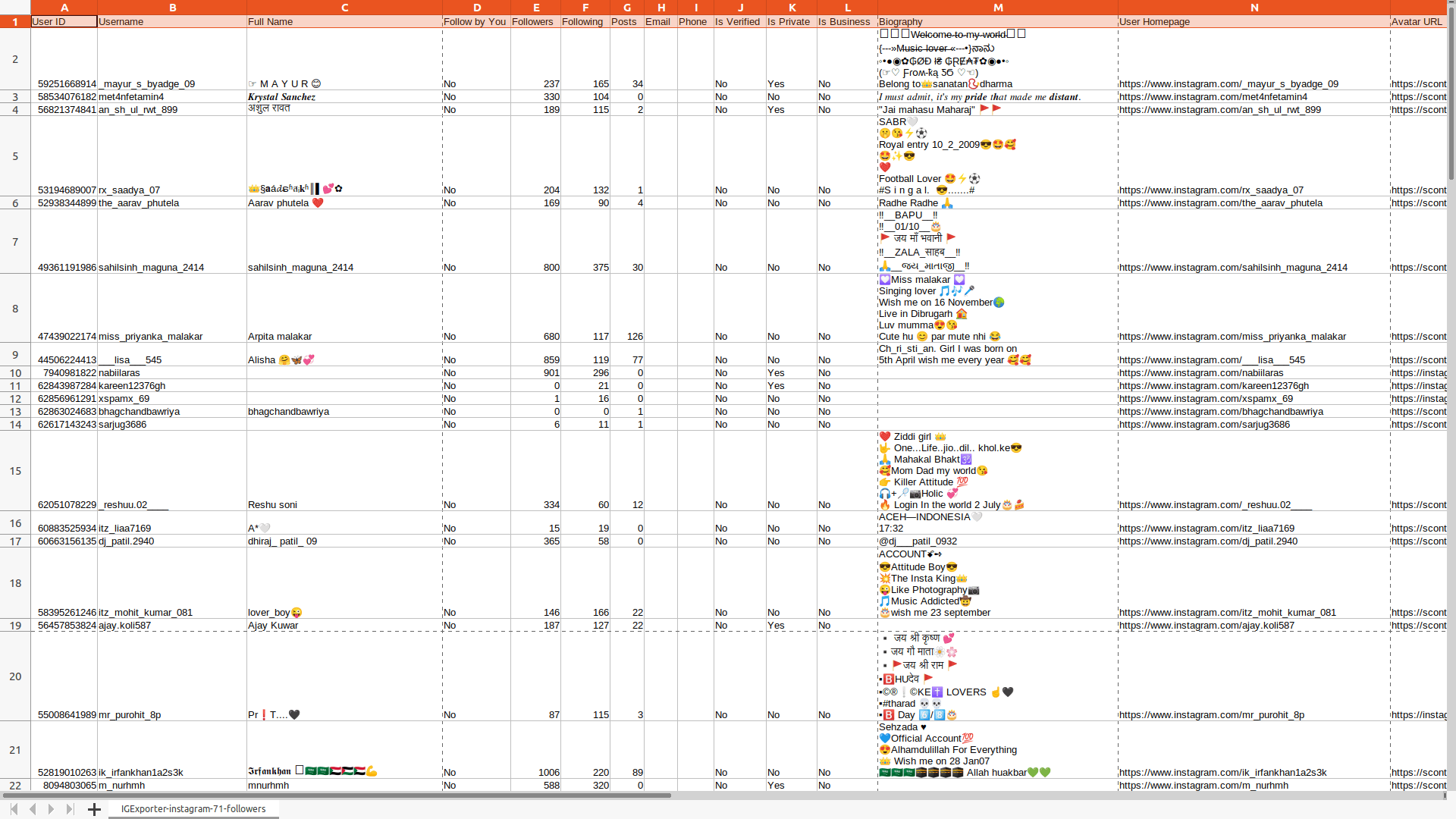 IGExporter is a powerful Instagram follower export tool that allows you to easily export your followers and following data to a CSV file. The tool can extract email addresses and phone numbers (if available), as well as other important information. This data can be used to make informed marketing decisions and enhance your overall Instagram marketing efforts.How to find an Instagram username?